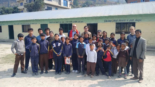 Julyan Nutt先生は、ゼミの学生が集めたお金を寄付するために、最近ネパールの学校を訪問しました。学校ではとてもあたたかく迎えていただきました。そして、これからさらに学校どうしで協力する方法について話し合いました。たとえば、オンライン授業をより良くすることや、将来、本学の学生がネパールの学校でボランティアとして教える可能性について意見交換を行いました。