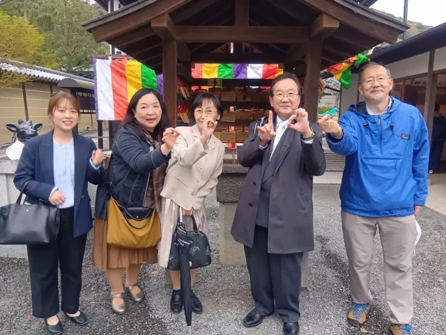 入学の儀の後は自由散策の時間となり、教員有志で**高台寺天満宮(網敷天神)**を訪れ、