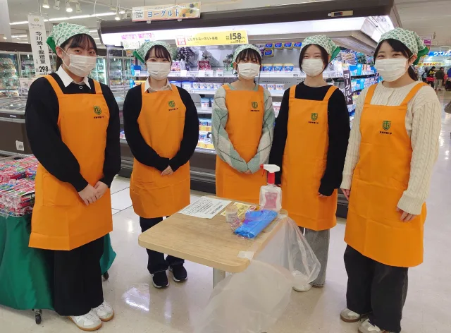 1月25日は、名古屋市緑区鳴海町のマックスバリュ有松駅前店で学生が店頭販売を体験しました。お客様に商品の説明しながら、試食いただきました。また、店内放送も経験しました。「彩りがとてもよいです。」「試食が美味しかったので、買ってみます。」など、お客様に喜んでもらえたようでした。デジタルチラシを見たお客様からも注文が入っておりました。売れるかなと心配していた100食準備されたお弁当も2時間で80数個お買い上げいただきました。短時間でしたが、多くの経験と達成感を得ることができました。