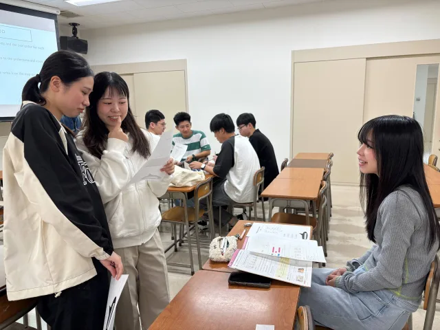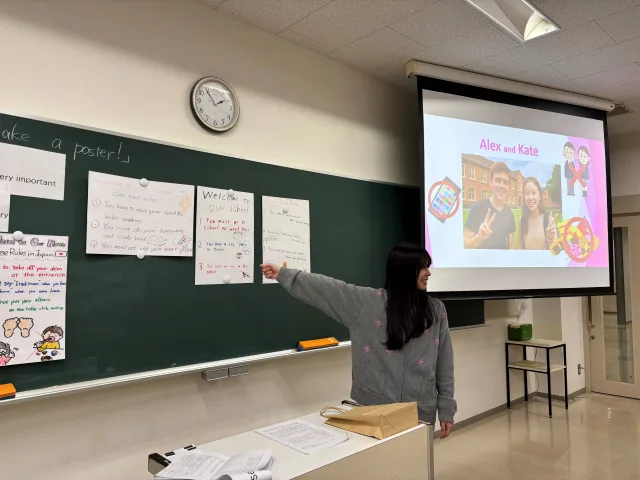 英語教育専攻の3年生は秋学期、オール・イングリッシュでの模擬授業に挑戦しています! 模擬授業では必ず「タスク活動」を盛り込むことを課題としています。「タスク活動」とは学習者が実際のコミュニケーション目的を持って英語を使う活動のことです。楽しみながら、実際に使いながら英語を学ぶ授業づくりを目指しています。
