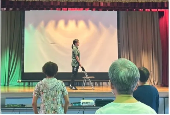 2025年9月4日、青森県田子町民を対象とした運動指導講座が田子町中央公民館にて開催されました。講座では、東海学園大学スポーツ健康科学部の丸山裕司教授が、フレイル予防に効果的な取組みについて講義を行いました。実技指導では、学生が「タプコプさわやか体操」を紹介・実演し、参加者とともに体操を実践しました。