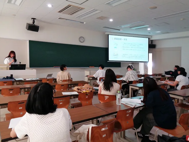 東海学園大学の心理学部には現在11の専門領域に応じたゼミがあり、ゼミごとに研究テーマや研究方法に特色があります。他ゼミの学生も聴講し、いつものゼミとは異なる雰囲気の会場で、学生たちは少し緊張した面持ちで発表に臨みました。