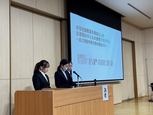 発表会を終え、学生それぞれが研究に対する達成感とともに、今後の社会貢献への意欲を新たにしていました。本発表会は、管理栄養士として求められる科学的根拠に基づく実践力を身につけた証として、大変有意義な催しでした。今後も本学は、地域社会に貢献できる管理栄養士の育成に取り組んでいきます。