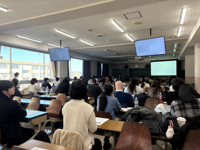 2月3日(火)、人文学部の合同卒業研究発表会を開催しました。伊勢ゼミ・小野ゼミ・北出ゼミ・武市ゼミ・中御門ゼミ・平野ゼミ・Bucsisゼミ・三浦ゼミ・村主ゼミの、合計9ゼミからあわせて60の発表が行われました。
