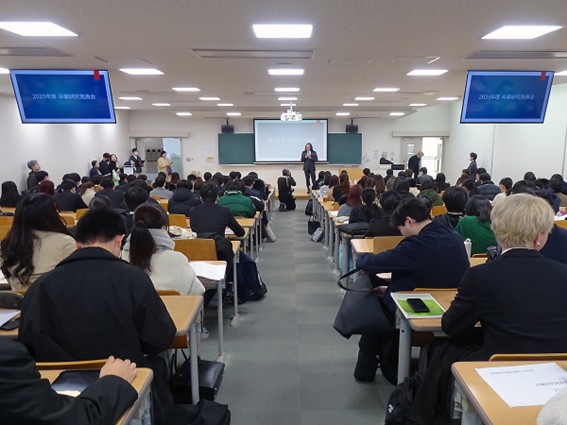 2月3日(火)、心理学部の2025年度卒業研究発表会が開催されました。4年生が2年間かけて取り組んだ研究成果を発表する、集大成の場です。110名を超える発表者に加え、70名近い下級生が聴講に駆けつけ、大変盛況となりました。