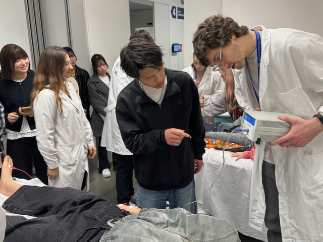 ローマでは、ローマ・バイオメディコ大学(Università Campus Bio-Medico di Roma)を訪問し、医療教育に用いられるシミュレーションセンターを見学しました。センターでは医療現場を再現した設備を活用した教育が行われており、学生が実践的に学ぶ環境が整えられていることが紹介されました。さらに、栄養相談をテーマとしたシミュレーション形式の講義にも参加し、患者への栄養指導を想定したコミュニケーションや指導方法について学ぶことができました。大学訪問では現地の学生との交流の機会もあり、互いの大学生活や栄養学の学びについて意見交換を行いました。異なる教育環境や文化の中で栄養学を学ぶ学生と交流することで、国際的な視点から栄養学を考える貴重な経験となりました。