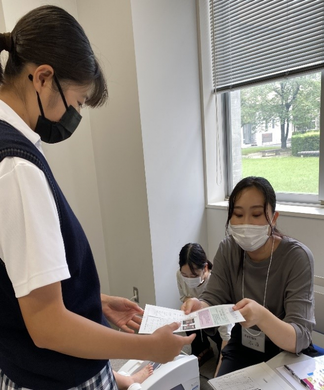 8月25日 同朋高校2年生の医療や看護に関心も持つ生徒を対象に、食育講座を開催しました。講座では、宮澤准教授による「管理栄養士について知ろう」と、地域保健活動演習の受講生による「骨の健康について」の食育講話と、感染対策を徹底した上で骨密度などの測定と調理実習を行いました。
