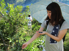 最後はデザートのブルーベリー狩り、木からそのままもぎ取って食べるという体験も大半の人が初めてで、なるべく大きい実が甘いとか、こちらは少しすっぱいとか、和気あいあいと楽しんでいました。