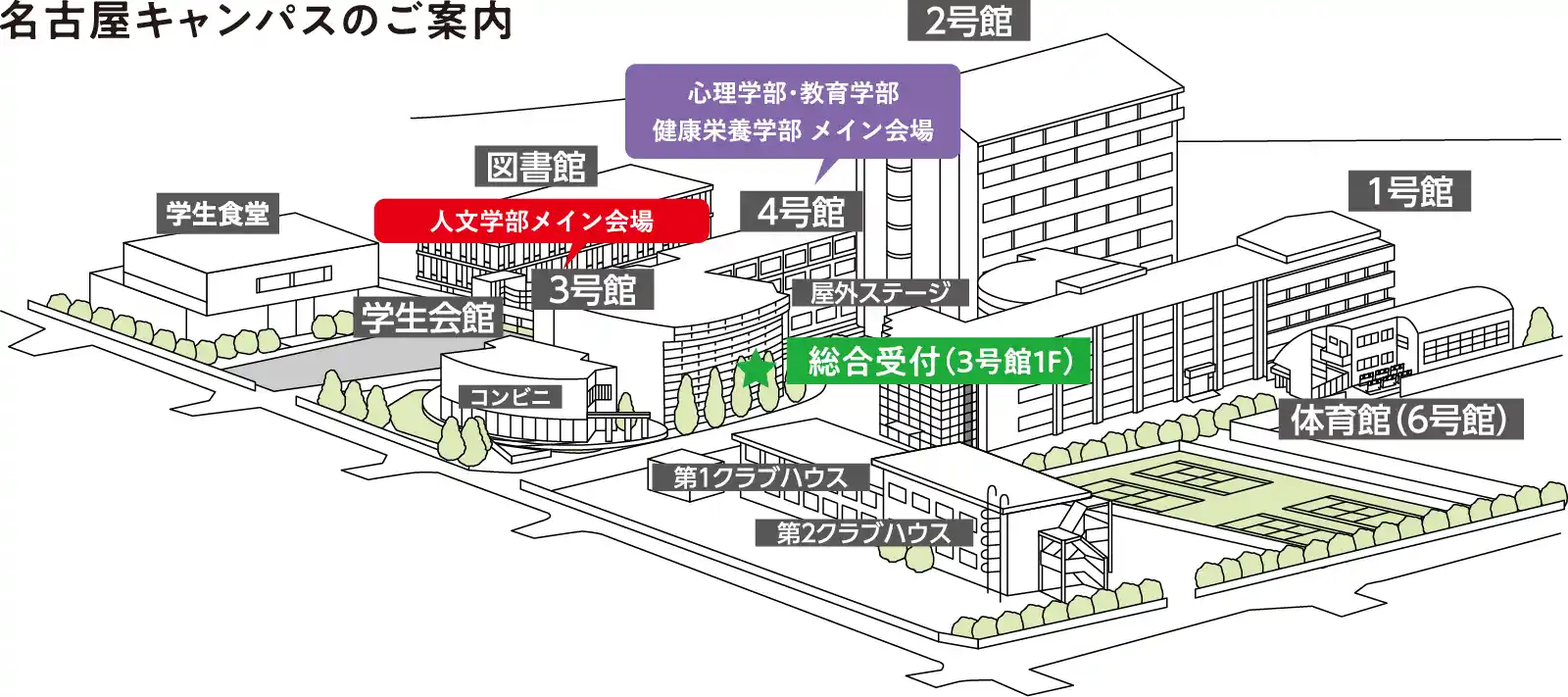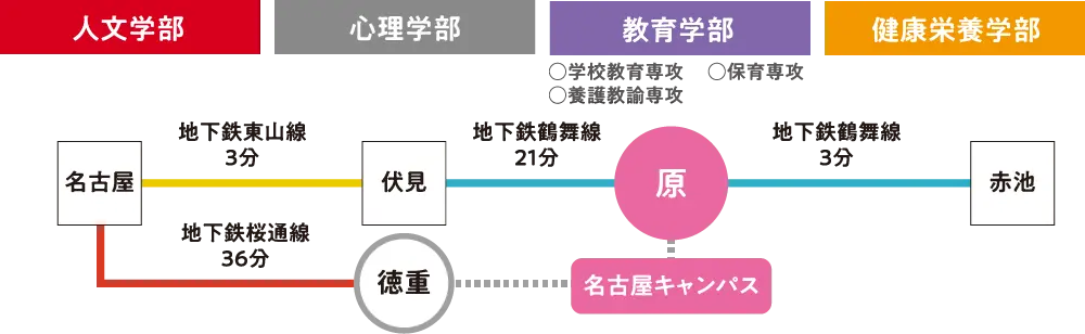 ※名古屋キャンパスには駐車場がありませんので、公共交通機関をご利用ください。