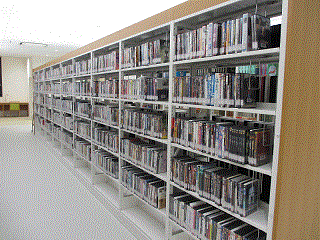 円型校舎の時は各階散り散りになっていた視聴覚資料も、ズラリと並べることができました。