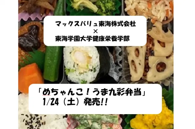 この度、マックスバリュ東海株式会社と東海学園大学健康栄養学部が共同開発したお弁当「めちゃんこ!うま九彩弁当」が1/24㈯より約1カ月間販売されます。