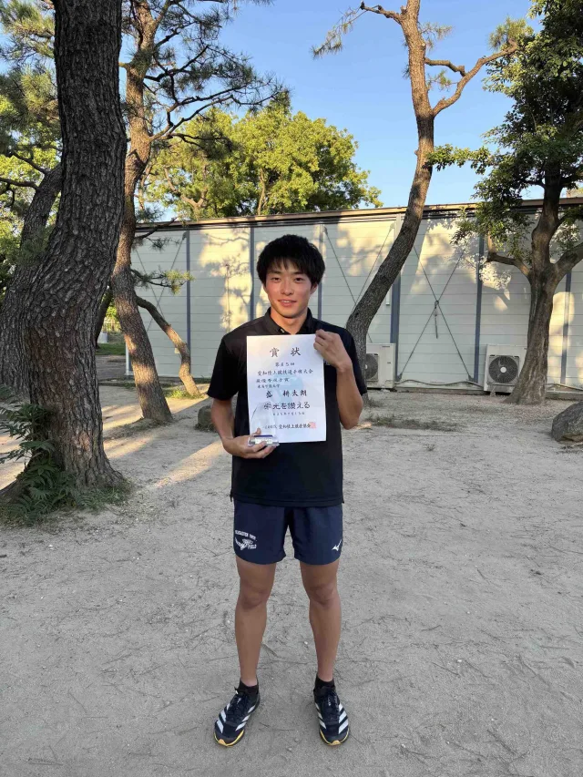 2025年7月12日・13日に行われた第85回愛知県陸上競技選手権大会で、盛 耕太朗さん(スポーツ健康科学部3年・岡崎城西卒)が男子800mで愛知県新記録を樹立。16年ぶりの愛知県記録更新となり、大会最優秀選手に選出されました。盛さんは同大会の男子400m、4×400mリレーにおいても優勝を果たしました。