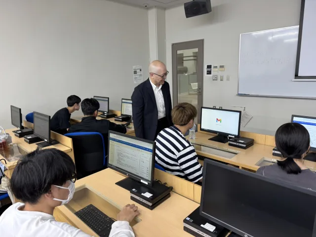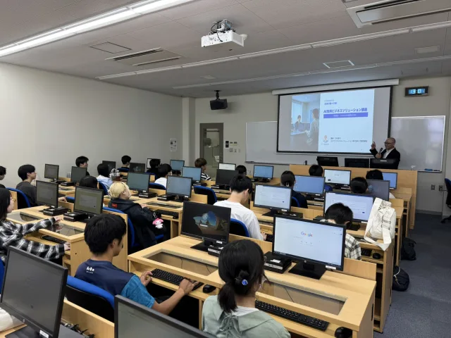 本学では教職員のみならず学生のAI活用推進を行っており、経営学部の伊藤ゼミ、松脇ゼミ、成田ゼミの3ゼミ合同でAI研修を行いました。研修は5/14、 21、 6/18の3回にわたって、Google Geminiを使った基礎から演習までを体験的に学修するものです。AI・DXの専門家であるタテマツデジタルソリューション株式会社の立松直文氏を講師に迎え、本学独自プログラムで進められました。