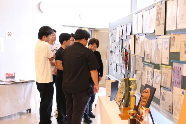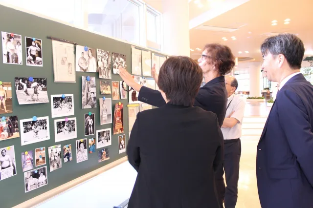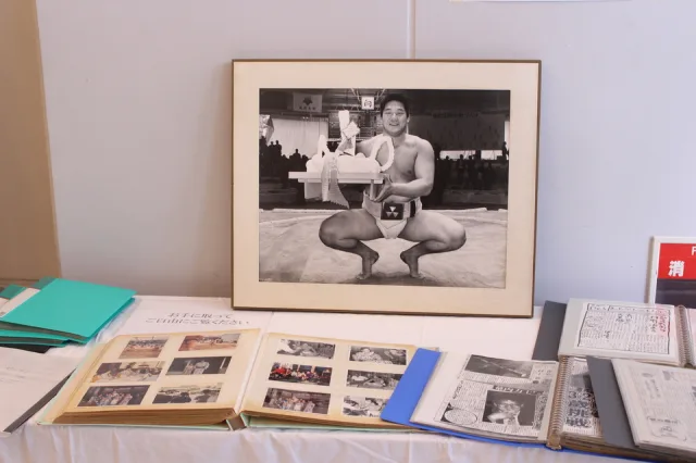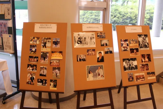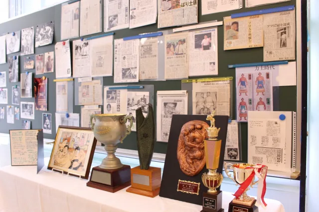 会場入口には、服部先生が角界でご活躍されていた当時の思い出の写真やトロフィー、楯、新聞記事などが多数展示され、参列者は先生のお人柄やご功績を偲びました。