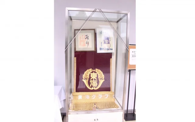 また、関取時代、東海中学・高等学校から贈られた「東海」の刺繍が入った化粧廻しも飾られました。法要では、東海高校時代から親交のあった経営学部 米本学部長が挨拶し、「頑張れば、先輩みたいになれると思った。服部先輩の背中を追ってきた。」と涙ながら服部先生への想いを語られました。法要の最後には、ご参列いただいた服部先生の奥様のご挨拶があり、「硬式野球部が一部リーグに残れるよう、最後まで応援していた。」「(相撲部監督時代)大学祭で100人前のちゃんこ鍋を作る話など、家でも楽しそうに話していた。」など、お話をくださいました。学生との時間を心から楽しみ、最期まで学生のことを大切に想っておられた先生のお姿が、ひしひしと伝わってくるご挨拶でした。