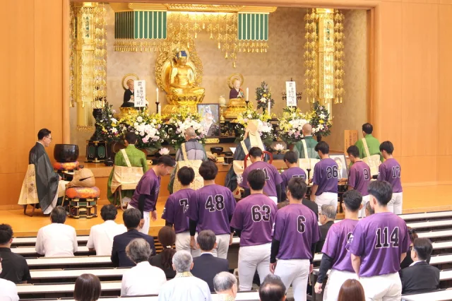 2025年6月25日(水)、三好キャンパス大講義室において、6月6日ご逝去されました経営学部 故・服部祐兒教授の慰霊法要を執り行いました。この日ご遺族をはじめ、多くの教職員並びに硬式野球部員や一般学生が参列しました。皆が共に先生を想い出し、感謝するための大切な時間となり、一人ひとりが心のこもったお焼香をし、ご冥福をお祈りいたしました。