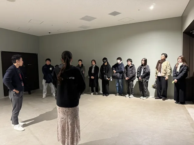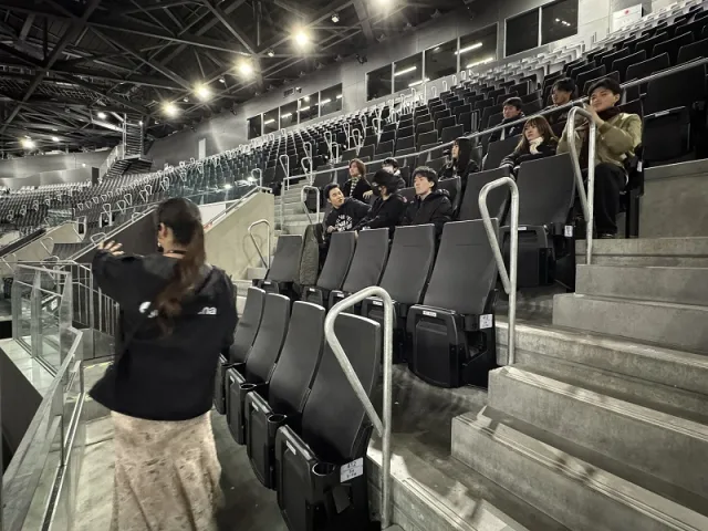 また、12月18日(木)には成田ゼミでのIGアリーナツアーも実施。普段コンサート等では見ることのできない裏導線や、選手のロッカールーム、スイートルームなどを見学。金COOからアリーナビジネスを支える様々な設備についての説明をいただきました。