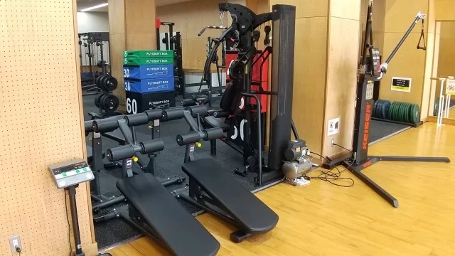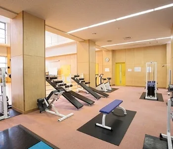 トレーニングジムは入口前のインフォメーションで利用手続き(1年更新)を行うことで、下記の時間内での利用が可能となっています。