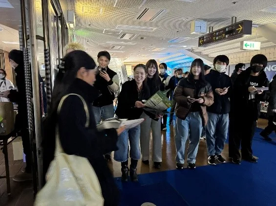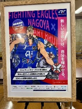 ③では、12/10(水)に行われたFE名古屋 vs富山グラウジーズ戦の会場で、②で制作した障がい者ポスターの展示設営、ポストカード配布などを行い、試合観戦しました。