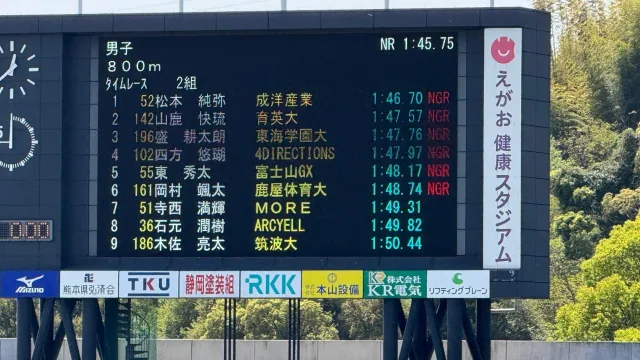 今回、男子800mには全国から19名が選出され、その中で盛選手は1分47秒76を記録し、3位入賞を果たしました。この記録は、昨年7月に盛選手が樹立した愛知県記録(1分48秒15)を更新する自己新記録です。