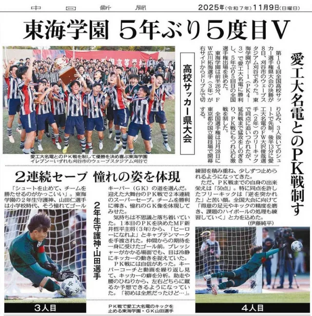 一方、同じ系列高校の学園高等学校サッカー部も、2025年11月8日の第104回全国高校サッカー選手権愛知県大会決勝においてPK戦の末、見事勝利して全国大会出場を獲得しました。