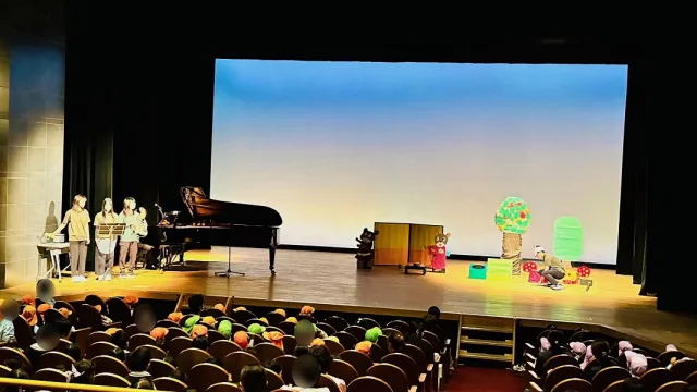 本コンサートでは、本学教育学部保育専攻の夏目佳子准教授と学生たちによる音楽劇『おむすびころりん』が上演されました。生き生きとした演技や音楽表現で物語を楽しく届け、会場は子どもたちの笑顔と拍手に包まれました。