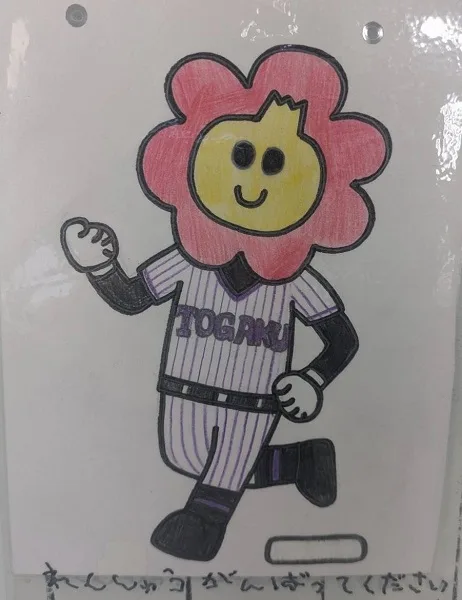 その一環として、瀬戸つばき特別支援学校の3年生の生徒さんが、瀬戸つばきのキャラクターを東海学園大学野球部バージョンにアレンジしてくださいました。リーグ戦ではそのキャラクターも毎回ベンチ入りしています。最近では、東海学園大学野球部のキャラクターを制作中です。