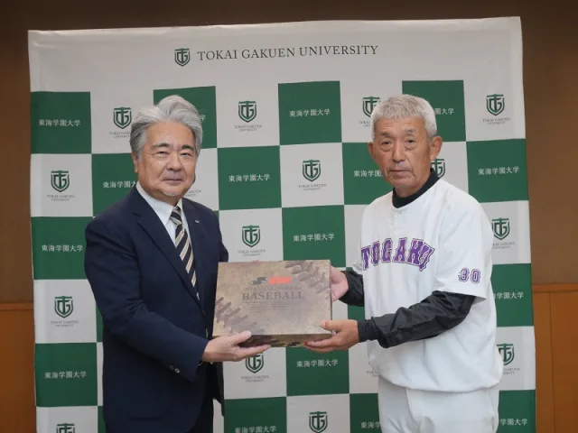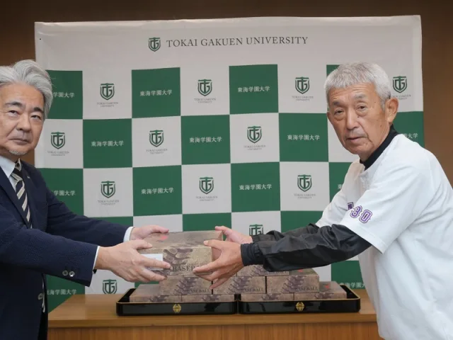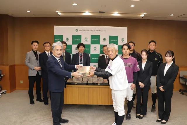この度、富士ビジネス・マシンズ株式会社(名古屋市中区千代田4丁目13-24)様より、硬式野球部への応援として、公式球10ダース(20万円相当)を寄贈いただけることとなり、その寄贈式が10月24日(金)に三好キャンパスで行われました。(1部2部入替戦の前日)