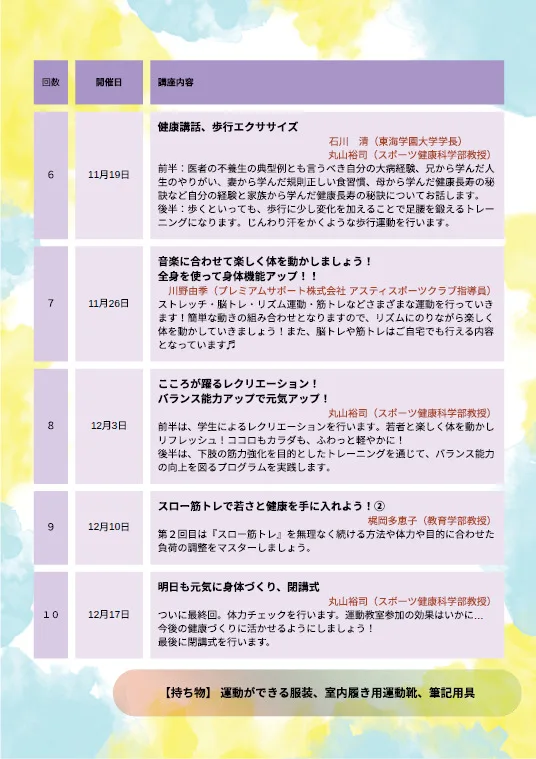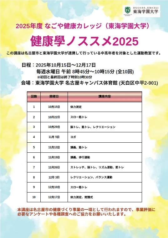 今年度も、名古屋市との連携事業である「なごや健康カレッジ」が開講されています。