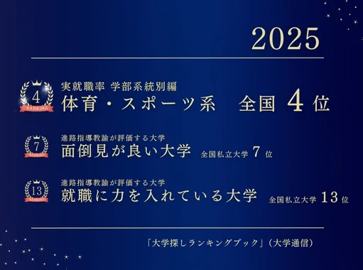 『2025年実就職率 学部系統別編 体育・スポーツ系 全国4位』