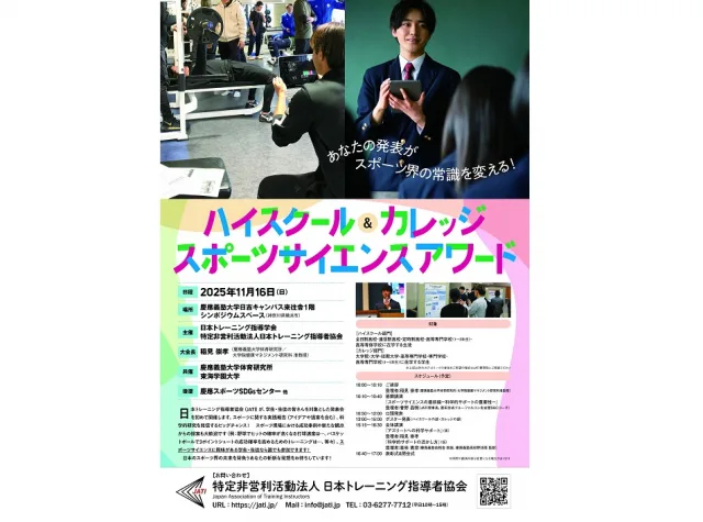 2025年11月16日(日)、慶應義塾大学体育研究所と本学の共催により、「ハイスクール&カレッジスポーツサイエンスアワード」が開催されます。