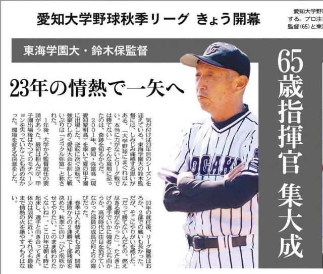 関連記事:9月6日 中日スポーツ「東海学園大・鈴木監督「見えない力も働いたのかな」リーグ15戦ぶりの勝利 元幕内「藤ノ川」服部さんの遺影をベンチに【愛知大学野球】」