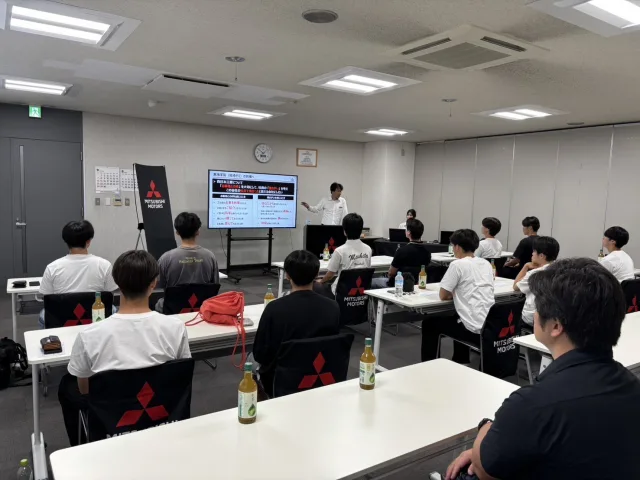 尾崎ゼミでは、2025年度より三菱自動車工業株式会社様ならびに西日本三菱自動車販売株式会社様と連携し、「販売会社における人材確保」をテーマとした研究プロジェクトに取り組んでいます。本プロジェクトでは、学生視点から「魅力ある会社」「選ばれる会社」について考察し、発表に向けて議論を重ねています。