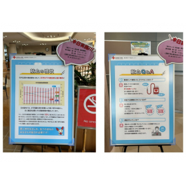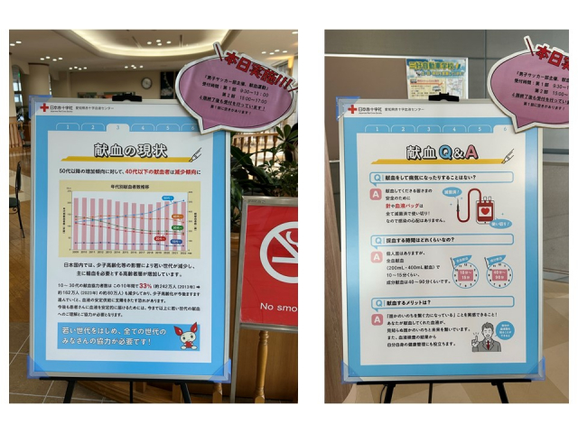 今回も愛知県赤十字血液センターの皆様にご協力いただき、男子サッカー部員を中心に部活動に所属している学生や教職員などをあわせて37名が献血を行いました。年末から流行している風邪やインフルエンザによりキャンセルが出たり、当日の気温が低く希望者が少なかったりと予定通りとはいかない部分もありましたが、献血の様子やパネル展示を気にする学生も多くおり、本企画が少しずつ学内に浸透していることが実感できました。