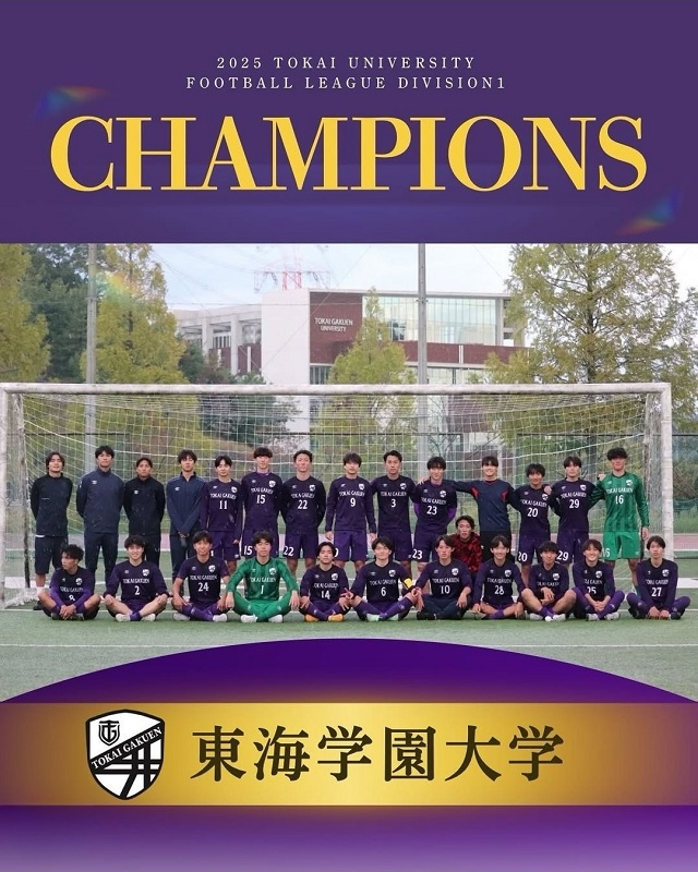 本学男子サッカー部が、2025年度東海学生サッカーリーグ1部で残り1節を残し、4年ぶり6回目の優勝を果たしました。これにより、本学は2025年度 第74回 全日本大学サッカー選手権大会(インカレ)への東海地区第1代表として出場することが決定しました。