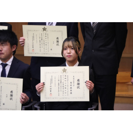 2026年3月4日(水)、愛知県警察本部で『大学生サイバーボランティア感謝状贈呈式』が行われ、この度、経営学部4年の峯村麻葵さんに感謝状が贈られました。