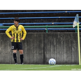 MFの神谷椋士(経営学部3年)選手が相手ボールをカットしカウンターから得点。神谷兄弟の2得点を守り切り決勝